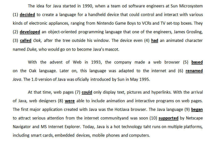 Complete this extract from a lecture handout about Java with the correct form of the verbs in the box